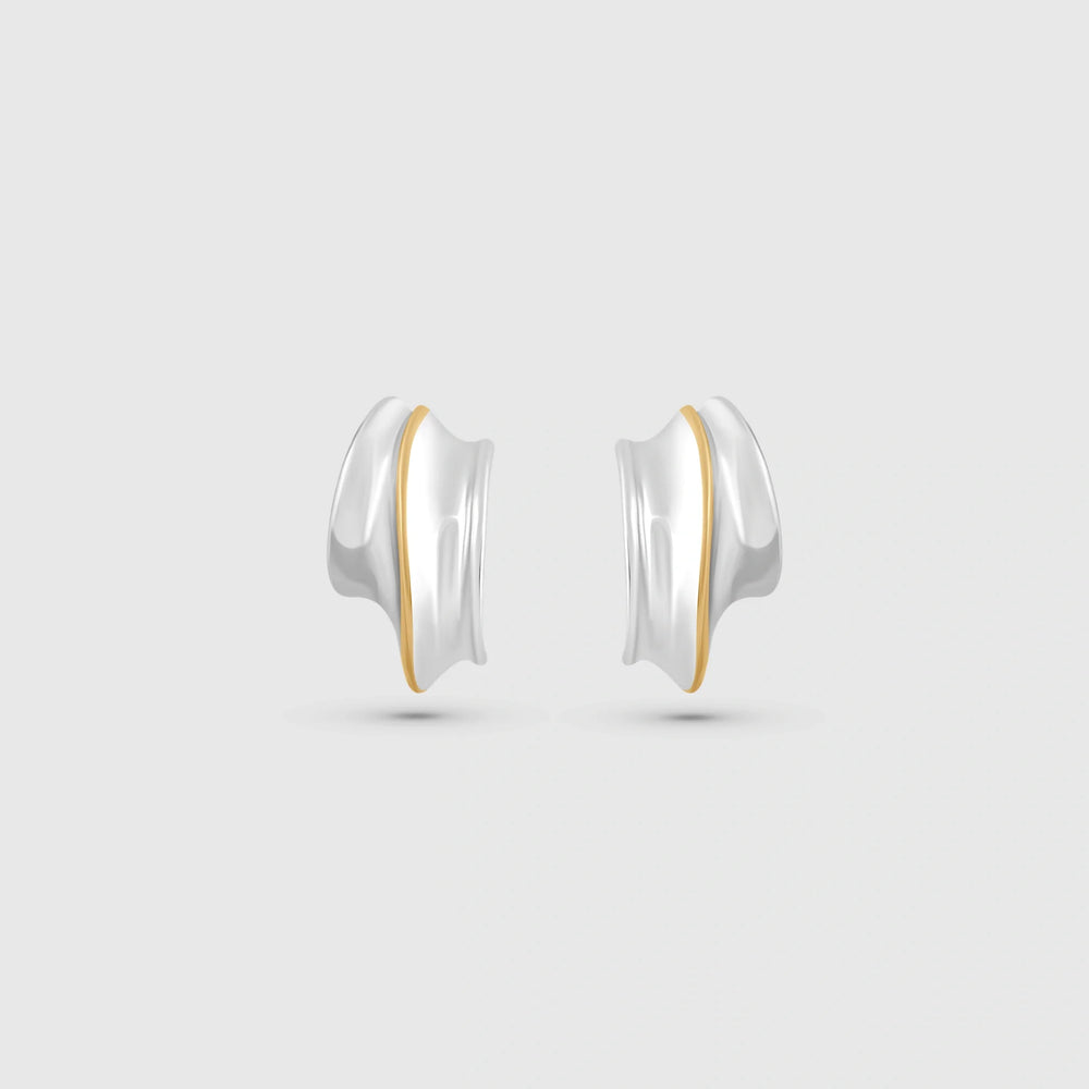 Sculptural and sleek, the Curved lined Earrings feature a fluid, wave-like silhouette in polished silver accented with a subtle gold stripe. Their dimensional shape and modern contrast make them a bold yet versatile addition to any collection.