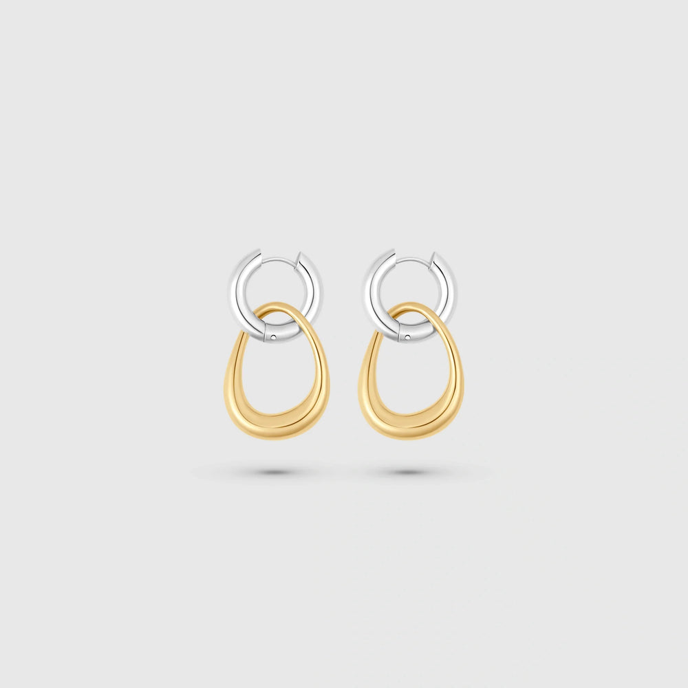 Modern and sculptural, the Fusion Loop Earrings combine soft curves with strong lines in a bold two-tone finish. With a silver hoop and golden drop ring, this pair brings effortless edge to your everyday or night-out style.