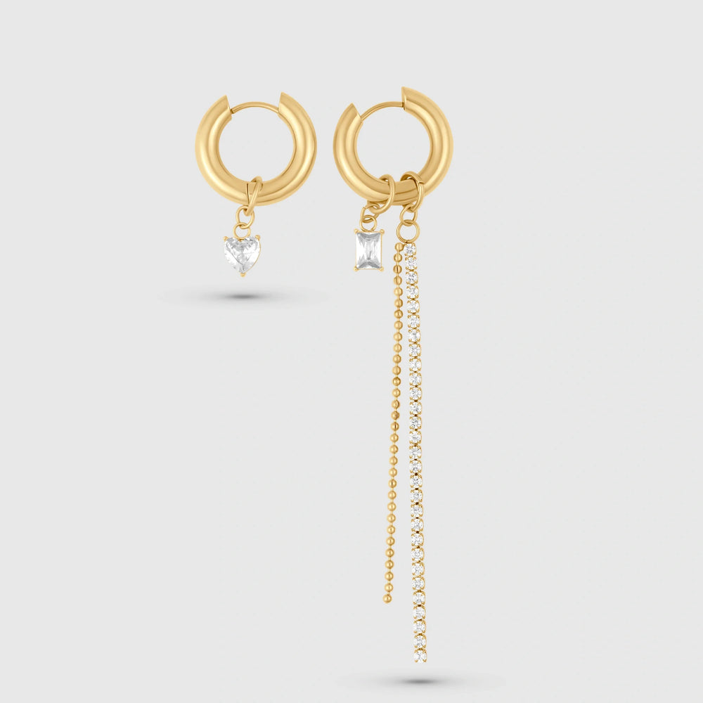 Add bold energy to your look with the Mismatch Heart Earrings. Featuring one heart-cut charm and one statement chain drop, this asymmetrical pair plays with balance and sparkle - for a confident, playful vibe.