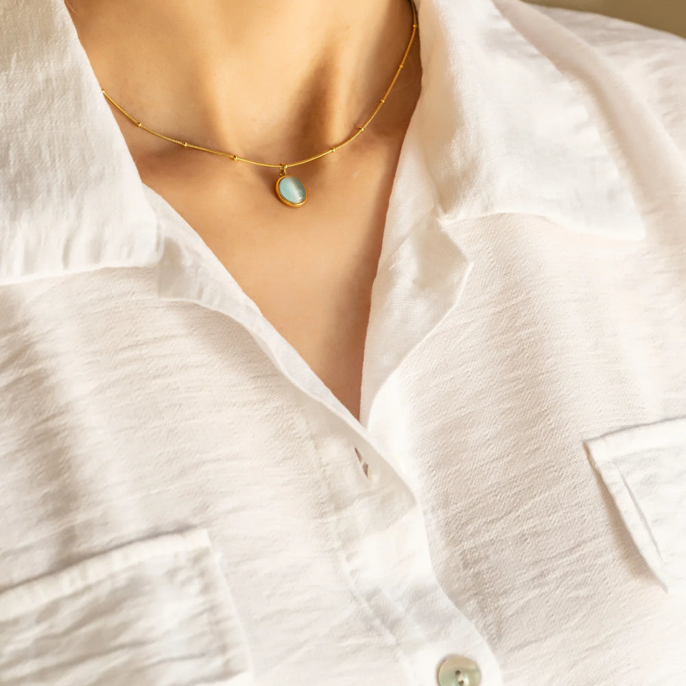 Delicate, colorful, and full of charm - the agate necklace features natural agate stones in dreamy shades of rose and coral, connected by a fine gold-tone chain. Lightweight and elegant, it adds a soft pop of color to any look, whether worn solo or...