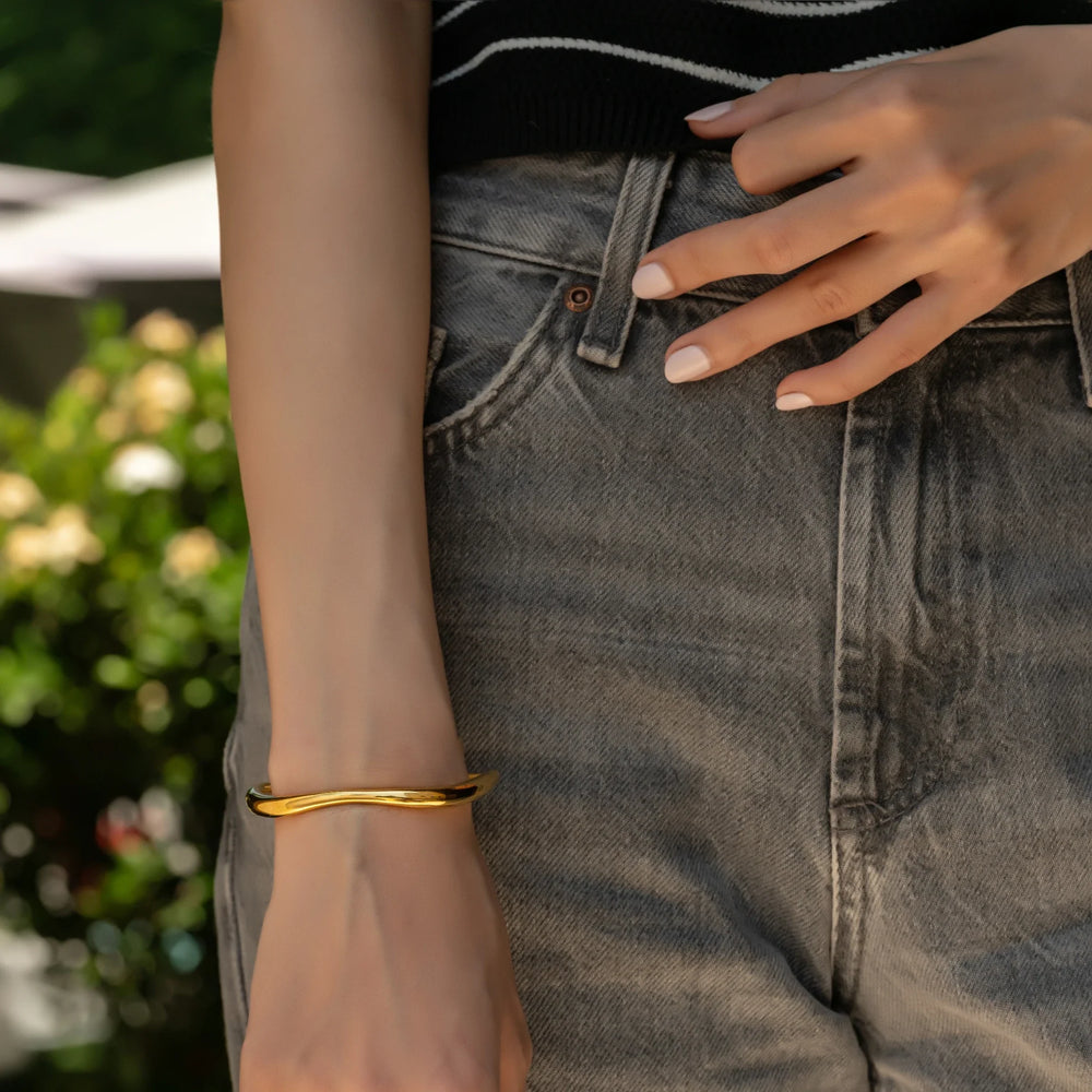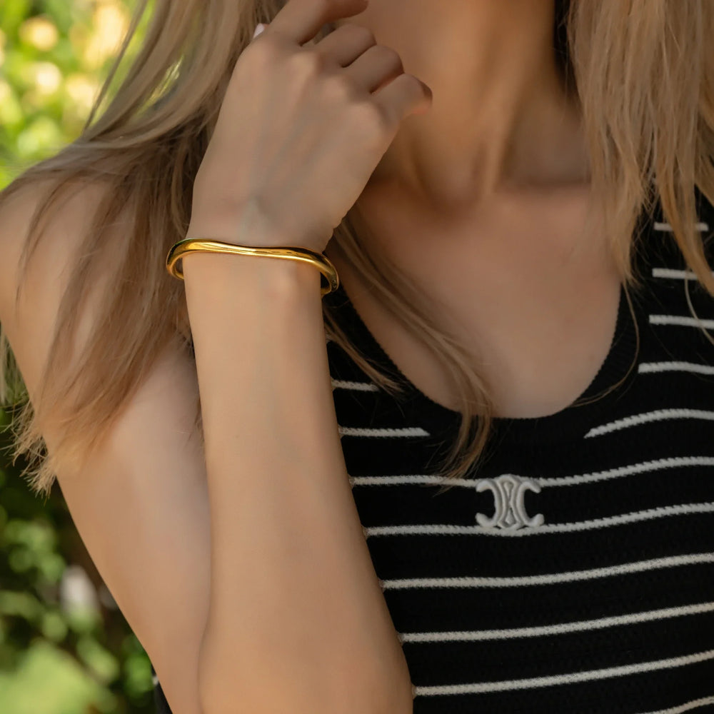 Timeless with a twist - the waveBangle features a fluid, open-cuff design with a soft, high-polish finish. Its bold yet minimal shape makes it perfect for stacking or wearing solo as a statement of pure elegance.